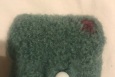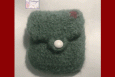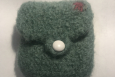Here's a sweet felted wool pouch. Knit from 100% wool, felted. White shank button closure. Tiny burgundy star flower felted into pouch.