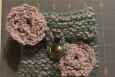 Here's a sweet pouch that was hand knit with wool and acrylic yarn. Felted, Acrylic yarn crocheted flowers embellish this pouch.